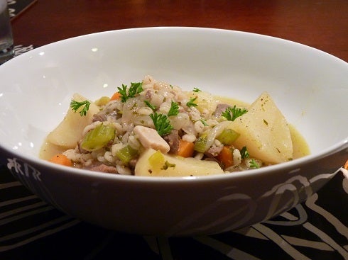 大麦、根菜、羊肉や牛肉を使ったスープ仕立ての煮込み。