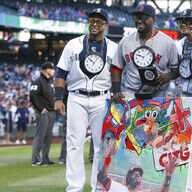 | ビッグ・パピがもらった記念品の数々。ツインズ贈呈のピーナッツ・バターは、パンではなくパンツに塗る!? …マン・スタジアムでオールスター・ゲームが開催された時に使用した椅子。BBQソースの詰め合わせ。カンザスシティは「バーベキュー・キャピタル・オブ・ザ・ワ… (出典:宇根夏樹) |