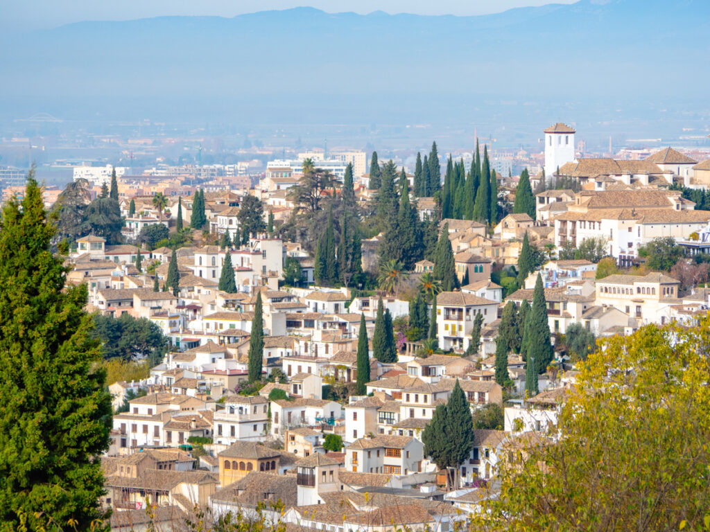 グラナダを代表する旧市街で、白い家々が密集しています。